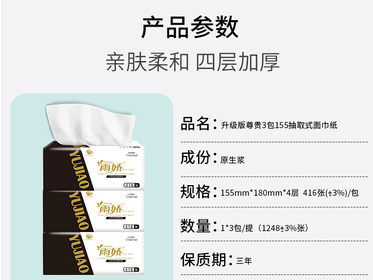 升級(jí)版尊貴3包155mm抽紙