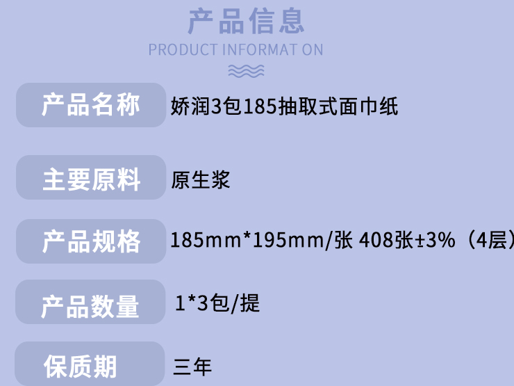 嬌潤(rùn)3包185抽取式面巾紙